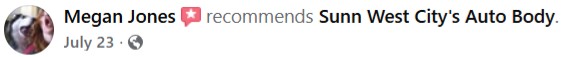 If I need any work outside of insurance such as paint or cosmetic I’ll be returning as a happy customer and passing the word on to any others in an accident to go to Sunn West Body Shop for any and all repairs! Their customer service is top tier and they truly go above and beyond for all their cilents. Look no further to anyone who is reading this!